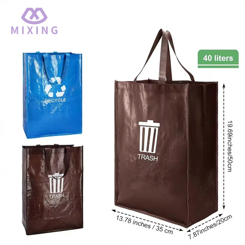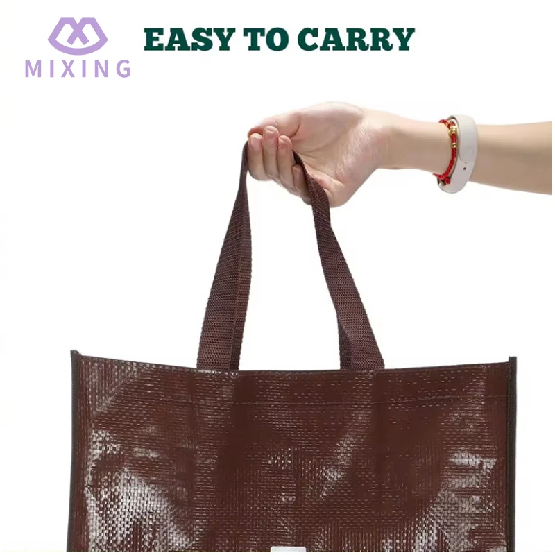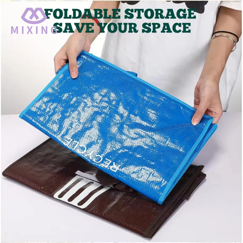 As sacolas de tecido PP China 40L da Mixing são feitas de tecido grosso, que tem uma textura distinta quando tocada, não é o tipo de material fino, macio e facilmente deformado, a textura é bem arranjada. Ao preencher as coisas, não será facilmente perfurado devido aos cantos afiados dos itens. Mesmo que vários potes de molho, vários livros grossos e outros itens um tanto pesados sejam preenchidos, o corpo do saco ainda pode permanecer crocante. Não grudará em objetos de maneira macia e mole.