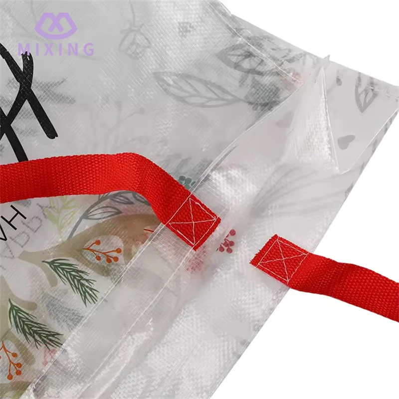 A sacola de compras em tecido PP transparente produzida pela Mixing combina engenhosamente a conveniência do material transparente com a textura do tecido. Quando vou ao supermercado comprar lanches ou necessidades diárias, ou ao mercado escolher verduras frescas, depois de colocar as coisas, não preciso remexer nelas. Posso ver claramente o que está dentro da bolsa e não me preocupo mais em deixar pequenos itens no canto da sacola e não conseguir encontrá-los.