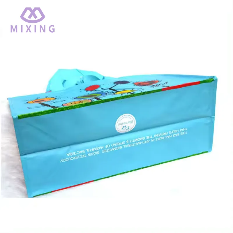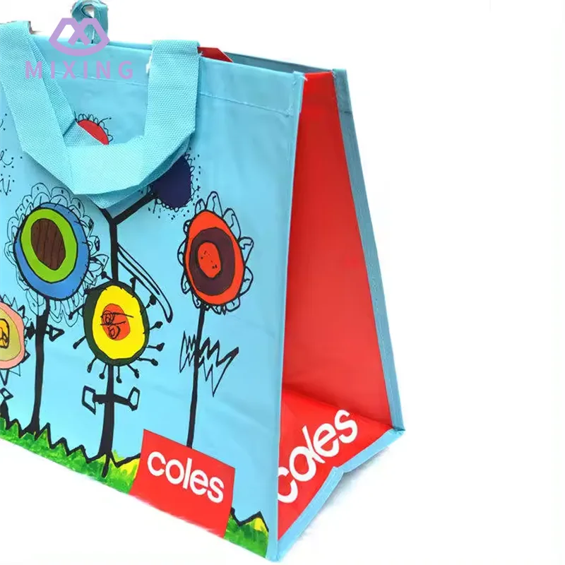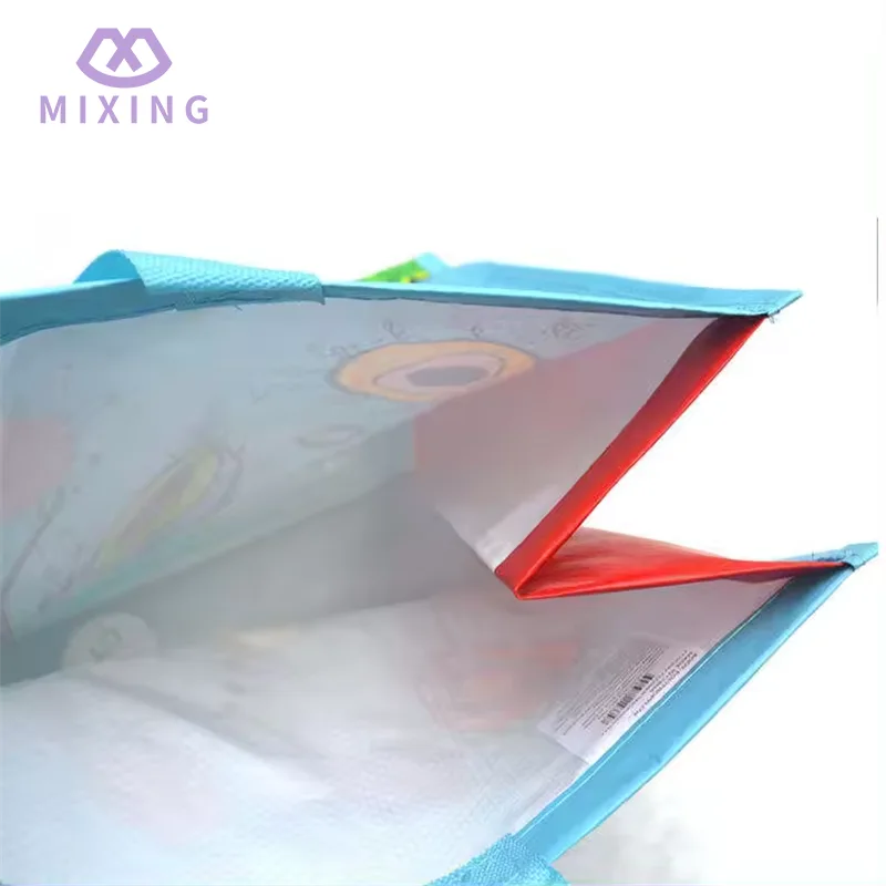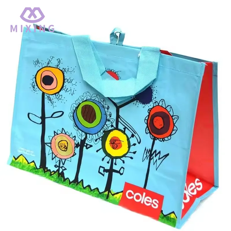 A sacola de compras em tecido PP reciclável da China produzida pela Mixing é feita com uma trama lisa e justa, parece sólida, mas não rígida, tem uma certa textura na mão, não é leve e não tem suporte, e não é fácil de deformar ao carregar coisas.