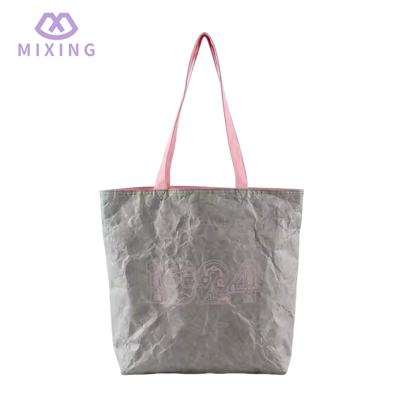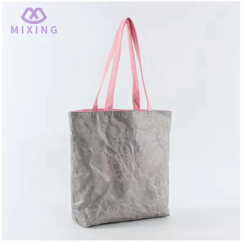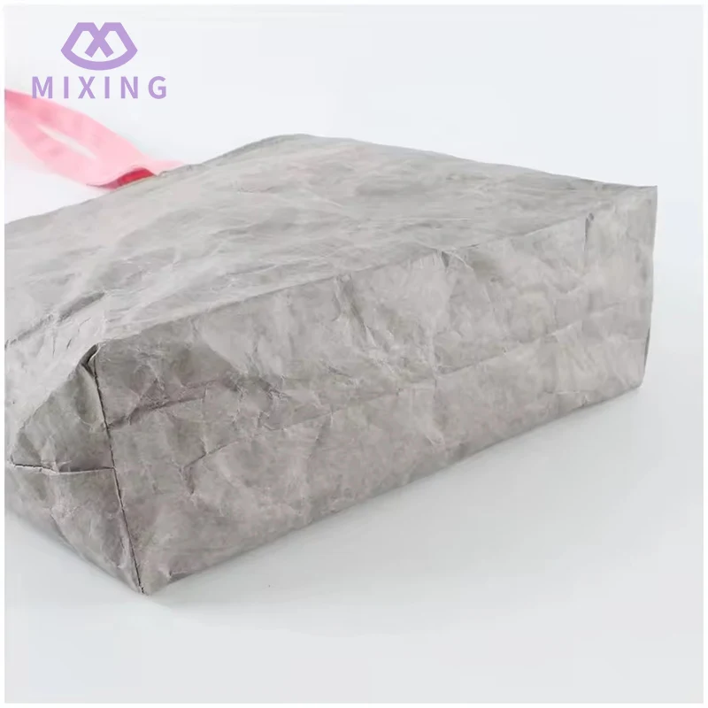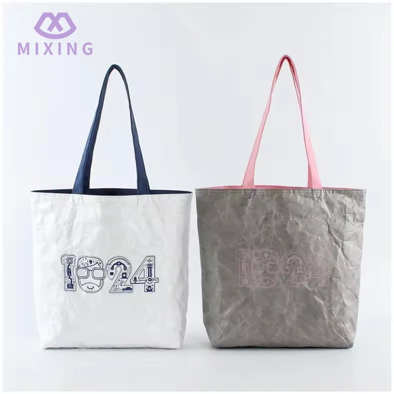 Em termos de material, as sacolas Tyvek são feitas de papel DuPont, que é um pouco rígido. Quando tocado, parece uma cartolina grossa e resistente, mas é mais macio que a cartolina. Quando comprimido, ele salta para trás sem deixar vincos. Ao transportar coisas, o corpo da bolsa pode ser esticado. Não é do tipo que fica macio e gruda na mão assim que está cheio de livros, fica bonito e tem uma textura boa quando segurado na mão, não parece barato.